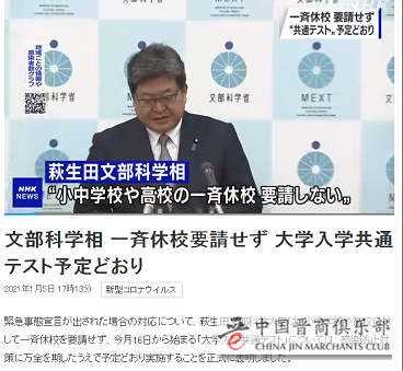 值得注意的是,日本文部科学大臣5日召开临时记者会,明确表示,紧急状态宣言期间,不会要求中小学停课,而“大学入学统一考试”将于本月16日如期举行。