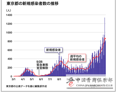 东京都日新增确诊人数走势图(图源:Nippon.com)