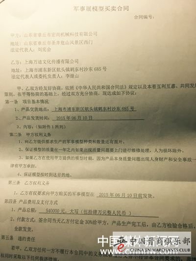 据万迪文化工作人员反映,在今年春节前,接到了晋城锐松负责人曲成松的展览邀请,经过洽谈,随后于2016年2月6日达成协议。万迪文化租赁给晋城锐松军事模型一批,在晋城白马寺广场进行展览,为期一个月,价值为伍拾肆万人民币,租金为拾万元人民币(建行转帐)。展览完毕合同到期后(3月10日到期),万迪文化工作人员于3月12日到达展览现场,准备撤回军事模型,发现对方已擅自更改了模型外表的油漆,并正准备拉往下一目的地进行展览。经多方交涉,电话联系,对方拒不归还所租用的模型,并声称模型是属于自己公司的。万迪文化的工作人员回忆,当日准备撤回模型时,被对方四五十人围困阻止,万迪文化工作人员选择了报警,晋城西上庄派出所出警后,作了笔录,建议双方去法院进行诉讼,归属权和争议没有解决之前,双方都不准动这批军事模型,随后万迪文化的工作人员就返回上海准备请律师进行维权。然而在万迪文化的工作人员离开晋城后两天,模型就被对方拉往运城恒大名都售楼处进行展览。万迪文化这边既没有接到派出所的通知,也没有接到晋城锐松的通知和协商。