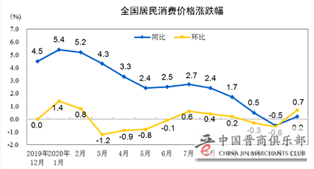 2020年12月份当月,CPI同比上涨0.2%,环比上涨0.7%;PPI同比下降0.4%,环比上涨1.1%。