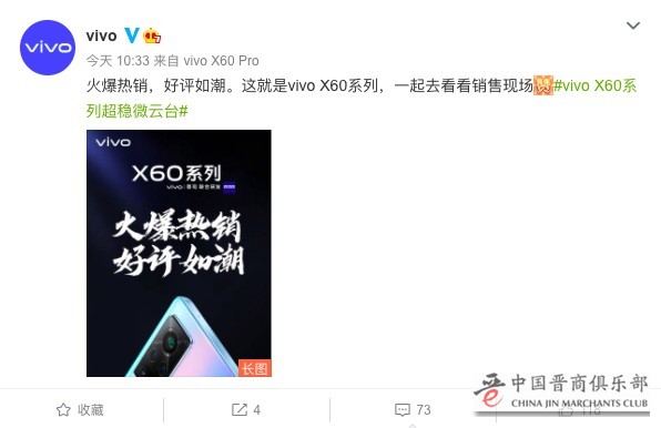 目前,用户可以在vivo官网、vivo京东自营官方旗舰店、京东vivo官方旗舰店、天猫vivo官方旗舰店、vivo手机苏宁自营旗舰店、天猫苏宁易购官方旗舰店、拼多多、分期乐、唯品会、招商银行掌上生活、平安银行口袋商城、交通银行买单吧、vivo体验店专卖店、vivo终端各大门店等线上线下渠道购买X60系列手机,好评如潮的影像旗舰等你来体验。