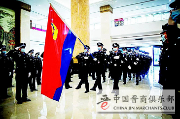 1月10日上午10时,太原市公安局隆重举行中国人民警察节庆祝活动宣誓仪式,民警向警旗致敬,重温入警誓词,庆祝首个人民警察的节日。