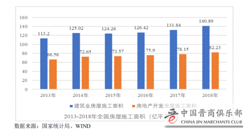 随着城镇化建设的推进,我国城市化率逐年提升,人们的居住条件日益提高,建筑铝型材的应用量随着城镇化率的提升而增长。 根据国家统计局公布的数据,2018年全年房屋施工面积达 140.89 亿平方米,较上年增长 6.89%,其中,房地产业房屋施工为 82.23 亿平方米,同比增长 5.22%。房屋建造面积的稳步发展保证了建筑铝型材的需求。