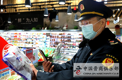 △1月6日,江苏省连云港市连云区市场监督管理局执法人员正在核查超市冷链食品追溯信息。