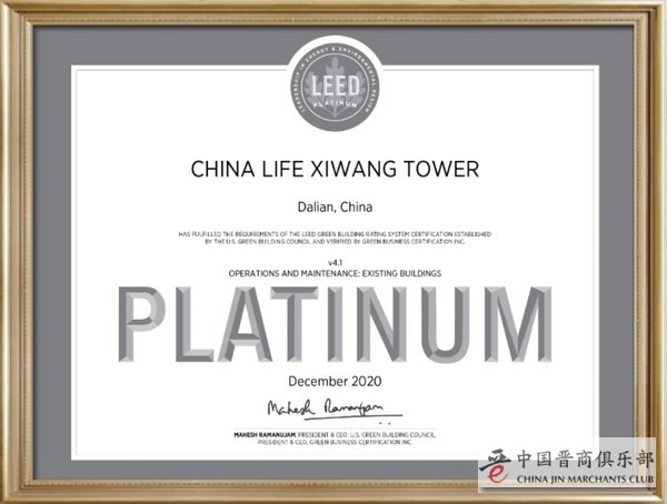 近日,大连城市地标——中国人寿希望大厦以高分获得由美国绿色建筑委员会(USGBC)颁发的LEED 建筑运营与维护铂金级认证,成为“国寿金融中心”(CLFC)旗下第四栋拥有LEED认证的写字楼,也是东北地区首个通过LEED建筑运营与维护铂金级认证的写字楼。