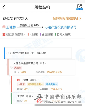 该公司由大连合兴投资有限公司全资控股,后者由王健林持股98%,王思聪持股2%。
