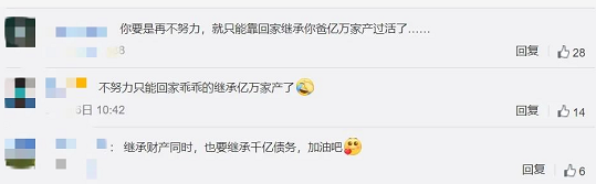 网友神评论:“不努力只能回家乖乖继承亿万家产了。”