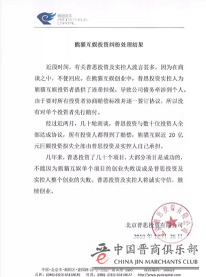 启信宝显示,熊猫互娱目前仍有1.15亿元被执行款未履行,未履约比例高达99.9%。普思资本曾在2019年12月披露,熊猫互娱近20亿元巨额投资损失,并且全部由普思投资及实控人王思聪自己承担。