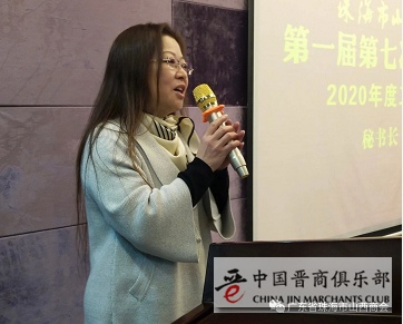 ▲ 商会秘书长李霞作了《珠海市山西商会2020年工作报告》,就2020年疫情捐赠、复工复产暖企行动、商会在一年中获得的荣誉、帮助家乡和商会会员企业做好项目对接工作、以及商会党支部的工作内容做了详细汇报,并暖心提醒在座的会员企业做好2021年春节期间新冠肺炎疫情的防控工作。