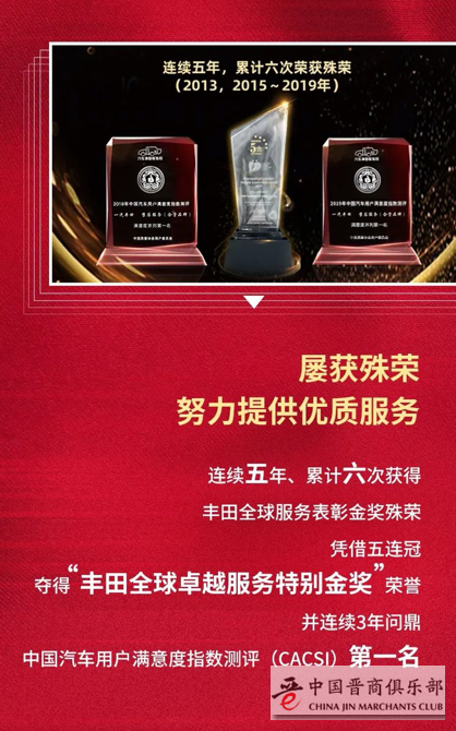 近年来的官方荣誉体系认可,更是展现了对一汽丰田售后服务体系的权威评价。近年来,一汽丰田售后部门连续五年、累计六次获得丰田服务全球表彰金奖。此外,2019年一汽丰田蝉联中国质量协会售后服务满意度合资品牌第1名的佳绩,为消费者和用户带去超值的产品价值体验和品牌服务。高质量的服务背后,有着高盈利、健康度极高的营销网络,这也正是一汽丰田跑赢大盘的底气所在。
