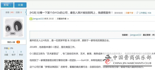 照片左上角醒目地打着“已通过(签证)”,下面是一段介绍,说H先生找到GoH1B后,GoH1B的律师指导他,给出合理的建议,找代理给他开了咨询意见信,加急15天,顺利斩获O-1签证。H先生的朋友一看,很满意,立刻就和GoH1B签了合同,交了钱,随后给他打电话,告诉他这一“喜讯”——我就要成为下一个你啦。H先生很诧异,什么照片?他打开网页一看,震!惊!了!先不说他根本没拿到签证,图中配的广告语,字字虚假:指导,加急,称H先生申请O-1是因为比H1B省时间……全部不是实情。朋友被虚假广告骗了!查看一下时间,这张图至少被GoH1B放到网上一年多了——这不是害了成千上万的人吗?果不其然,H先生的另一个朋友也差点买GoH1B的服务,后来因为在别处解决了,才虎口逃生。申请工签失败,承受被踢出美帝的结局,倒头来被三言两语“整容”,给人家做了嫁衣?H先生怒了!2020年11月,他以侵犯肖像权,盗用相似性,欺诈和违反《不正当竞争法》的多种名义,在加利福尼亚州高级法院投诉GoH1B: