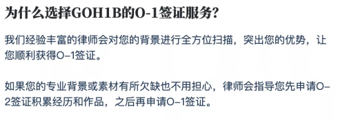 案件的主人公H先生,是一位资深平面 & 3D设计师,就职于一家有名的美国企业。2018年,他准备申请O-1签证,留在美国工作。O-1签证又称为“艺术家签证”,专门发给在科学、艺术、教育、商务或体育方面杰出的外国人,包括在电影电视行业的国际大牛。如果你表现卓越,那么就可以申请这个签证。他找到了一家横竖都是谷歌引擎排名第一的团队——GoH1B,来帮他搞定工签的申请: