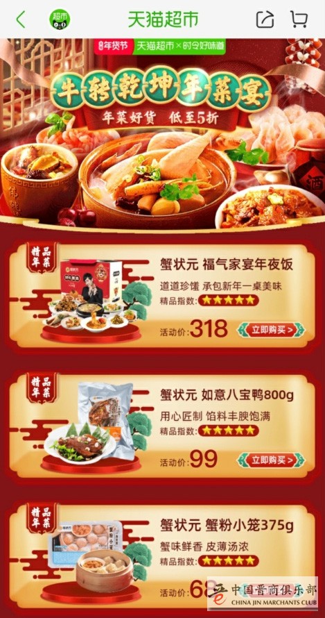 (蟹状元年夜饭礼盒及年菜单品入驻天猫超市)