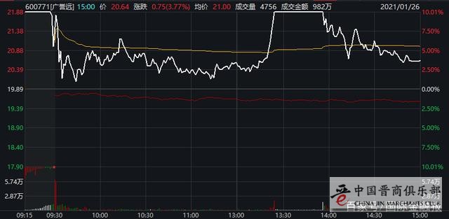 受上述消息刺激,1月26日广誉远以涨停价格开盘,随后股价大幅下滑,午后又曾一度冲上涨停。截至收盘,该股报收于20.64元/股,涨幅3.77%。