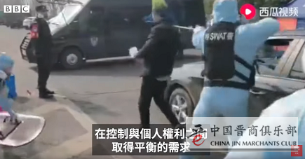 这时BBC的镜头配上了一段警方“用网蒙头拘捕民众”的画面,观察者网查询发现,这段视频来自于去年疫情期间的一次高速反恐演练。