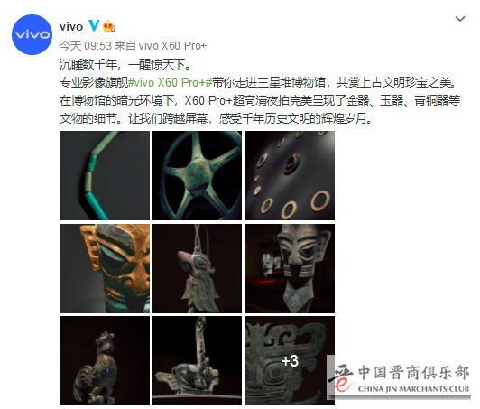当今,文化热潮兴起,越来越多的人对文物知识、中华传统文化感兴趣,而文博类综艺的不断创新,也掀起了一轮新的“国学热潮”。今天,vivo“数字国宝助力计划”正式启动,首站来到位于四川的三星堆博物馆,在博物馆的暗光环境下,vivo X60 Pro+通过超高清夜拍模式完美呈现了金器、玉器、青铜器等文物的细节,以纪录片及大量精美样张的形式,记录下了上古文明珍宝之美,让我们跨越屏幕,感受千年历史文明的辉煌岁月。