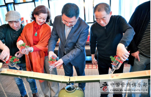 活动中,艺术大咖们与丰谷酒业总经理卢中明共同参与“竹引藏酒”仪式,将用水晶瓶盛装的丰谷原酒缓缓倒入竹管中,酒液顺着竹道流淌,浓香扑鼻;随后中国书协草书委员会委员、四川省书协第六届副主席何开鑫先生现场题字,以一个“雅”字把书法艺术与丰谷低醉文化融会贯通。仪式胜似曲水流觞,流淌的是滴滴情谊,把丰谷与艺术家们紧紧相连,融为一体。