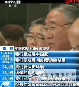 大会期间,解振华还强调,“我们是气候变化的主要受害者,(那么)德班会议的结果,也不能够产生对发展中国家不利的结果。”