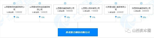 山西资本圈注意到,由陕钢集团等多家重点钢铁企业发起组建的西北联合钢铁有限公司,于2021年1月28日在陕西省西咸新区注册成立,注册资本为10亿元,六家股东分别为陕钢集团、北京建龙重工集团、山西晋南钢铁、晋钢铁控股集团、山西高义钢铁、山西建邦集团,经营范围则显示主要为金属材料、金属矿石的销售等。