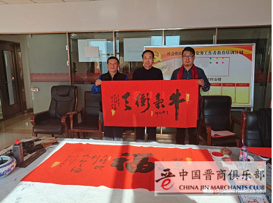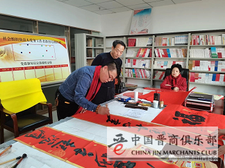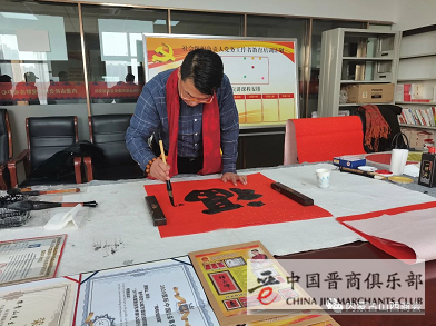 在新春即将来临之际,2021年1月31日下午,商会副会长、文旅产业书画院院长樊青山,带着笔墨和已准备好的各类书法纸张,来到商会会议室,为商会会员书写了各种对联、横幅、条幅共63幅,表达了他对会员的良好祝福和对商会的浓浓情义,商会对他的无私奉献的大爱精神表示真诚的感谢,祝愿我们的企业在新的一年里坚定自信、审时度势、共渡难关,以坚持不懈的努力创造辉煌业绩,实现企业的责任担当和自身价值。
