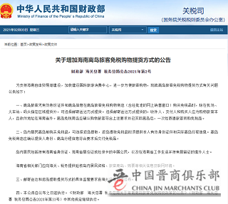 据财政部网站2日消息,财政部、海关总署、税务总局发布公告称,为支持海南自由贸易港建设,进一步方便旅客购物,海南离岛旅客凭有效身份证件和离岛信息在离岛旅客免税购物商店(含经批准的网上销售窗口)购买免税品时,除在机场、火车站、码头指定区域提货外,可选择邮寄送达方式提货。岛内居民离岛前购买免税品,可选择返岛提取,返岛提取免税品时须提供本人有效身份证件和实际离岛行程信息。