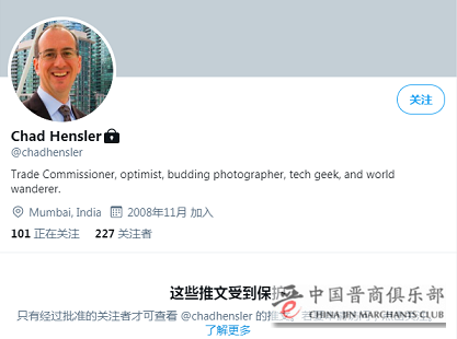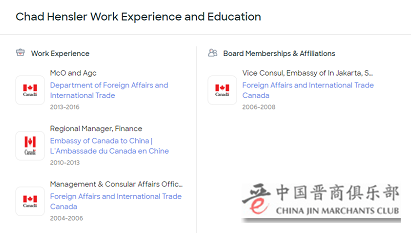根据Zoominfo上的公开信息,韩思乐曾在2004-2006、2013-2016年任职于加拿大全球事务部,2006-2008年他还曾在加驻印度使馆工作过,主要负责的就是贸易行政部分。