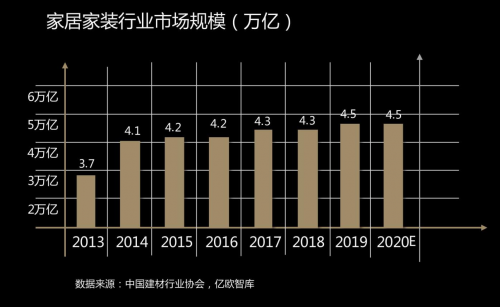近几年,家居软装市场年复合增长率为3.3%,市场格局相对稳定,2020年经历疫情冲击,但总体规模仍保持4.5万亿元规模。行业市场规模未曾减少,你是增长还是下滑?