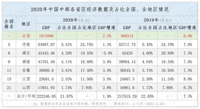 先来看被归入中部地区的山西。中部地区一共有六个省份,此前我们已经推送了除湖北之外的其余四省河南、湖南、安徽、江西。而山西呢,无论怎么看,似乎在中部六省中都是排在末位的存在。