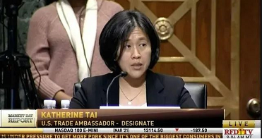 对此,曾在特朗普政府时期担任美国贸易代表办公室律师的贾米森·格利尔(Jamieson Greer)解读说,他将戴琦在关税问题上的观点,解读为将继续特朗普时期的立场。“从今天的证词来看,很明显,拜登政府不把关税视为一个道德问题。你必须小心,但它们是可以使用的工具。”