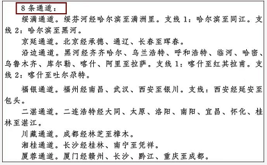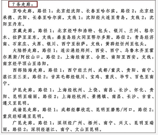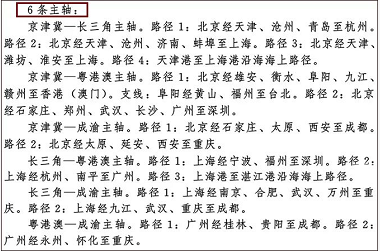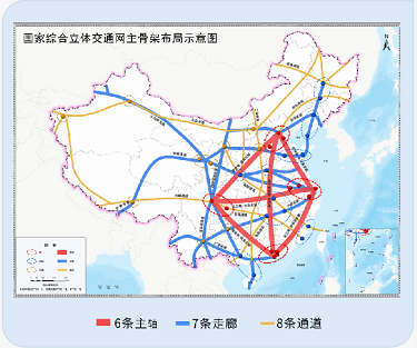 国家综合立体交通网的主骨架,由这张网中“最为关键的线网构成”,包括6条主轴、7条走廊、8条通道。