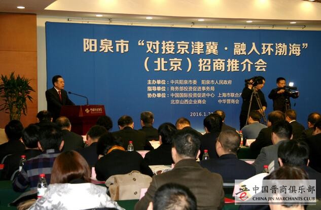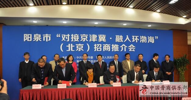 1月21日,陈永奇率队赴京参加阳泉“对接京津冀融入环渤海”(北京)招商推介会。推介会上,阳泉市与京津冀一些大集团、大企业共签约15个项目,涉及总投资201.6亿元。15个项目涵盖了新能源、装备制造、现代服务业等领域,科技含量高,辐射带动强,发展前景广阔。