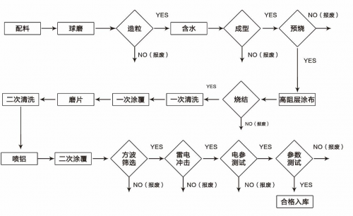如果原料是保证质量的基础,那么对生产流程的管理就是提质增效的重中之重。为规范产品生产流程,金冠电气采用完善的生产工艺和先进的生产设备量产各种型号避雷器和配电网产品。如电阻片、瓷套避雷器、复合套避雷器、配电网产品等主要产品,金冠电气均为其量身制定严格的生产工艺流程。