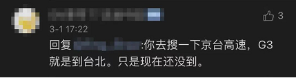 这位网友介绍,G3京台高速一直都有,只是目前暂时没通到台北。下面则有留言提出疑问,称“京台高速”中的“台”莫不是指的浙江台州?