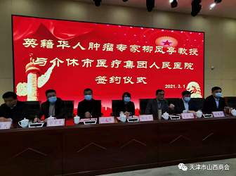 3月1日上午,介休市医疗集团与天津市肿瘤专家的合作项目举行了正式签约。天津山西商会(中国晋商俱乐部联合发起机构)副会长许大为代表商会参加了签约仪式。