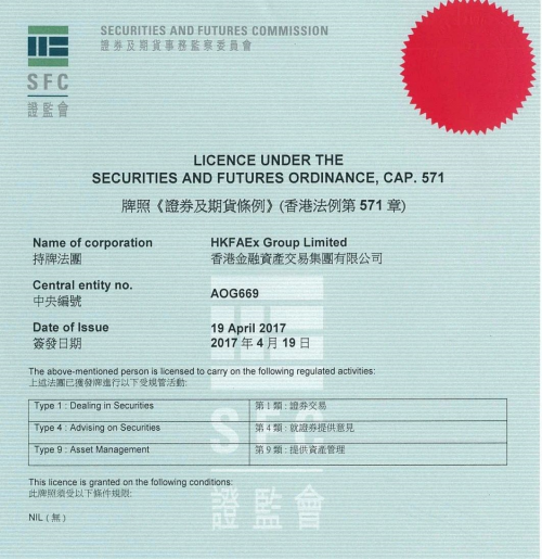集团公司持有香港证监会颁发的1号、4号、9号牌照