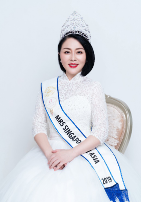 (马雅芳荣获2019年新加披夫人的称号。皇冠的意义是:拥有怜悯的心,体恤他人,尤其是年长者。)