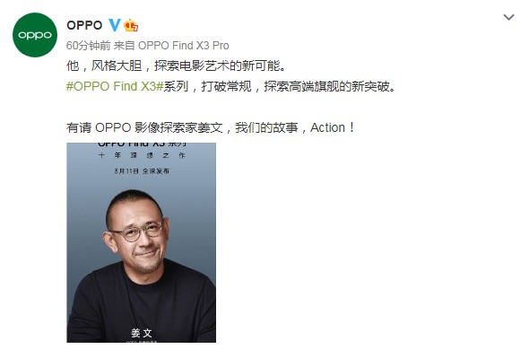 作为OPPO旗下的高端旗舰系列,OPPO Find系列一直承担着OPPO探索最前沿科技的使命,历代OPPO Find系列机型在综合使用体验上都有出色的表现,受到了广大用户的好评。如今OPPO Find系列已经走过了十个年头,而OPPO Find X3系列作为OPPO的十年理想之作,势必会在多个方面带来重大升级。近日,OPPO官方正式宣布导演姜文成为OPPO影像探索家,姜文将与OPPO Find X3系列一起探索手机影像的新可能,这让人十分期待OPPO Find X3的影像表现。