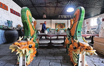 “我家的‘宫廷黄’在明清期间给故宫烧的琉璃瓦颜色非常漂亮,都是用咱们东山的矿物原料。我爷爷讲,那时家里有骆驼队,烧好的琉璃瓦用骆驼送往北京故宫,气势非常大。”说起这些故事,苏式琉璃第八代传人苏永军满脸自豪。