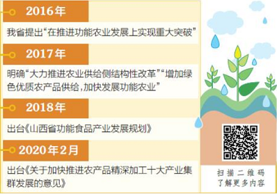 早在2016年,我省就提出要“在推进功能农业发展上实现重大突破”;2017年,进一步明确“大力推进农业供给侧结构性改革”“增加绿色优质农产品供给,加快发展功能农业”;2018年,《山西省功能食品产业发展规划》出台,正式把功能食品产业纳入到省级发展规划中……山西走功能农业道路的决心越来越坚定。