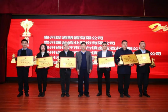 3月6日,遵义市酒业协会、仁怀市酒业协会在仁怀经开区举行了2020年度年会暨第五届红高粱奖颁奖典礼。贵州省仁怀市茅台镇金酱酒业有限公司在世界十大烈酒——遵义产区第五届“红高粱奖”评比中脱颖而出,荣获了“2020年度仁怀产区纳税前十强、团体贡献奖、大师质量奖”三大企业奖项,贵州省仁怀市茅台镇金酱酒业有限公司包装车间主任王玉琼被评为优秀车间主任,贵州省仁怀市茅台镇金酱酒业有限公司销售副总陈静亚被评为优秀营销经理,贵州省仁怀市茅台镇金酱酒业有限公司生产车间主任王正现被评为优秀酿酒师。