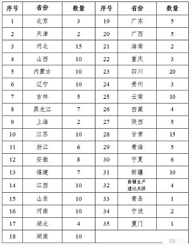 全国农民合作社质量提升整县推进试点单位数量分配表