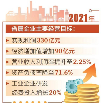 据介绍,过去的2020年,省属企业统筹推进疫情防控和生产经营各项重点工作,以深化改革应对下行压力,资产总额达3.3万亿元,同比增长3.5%;净资产8622.2亿元,同比增长4.6%;资产负债率降至73.6%,同比下降1个百分点;全年实现利润198.2亿元。