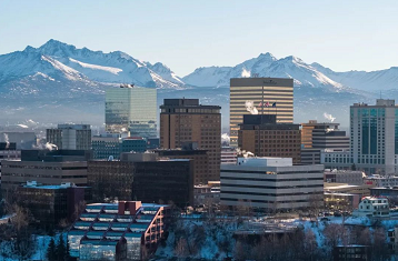 位于北美大陆西北端的阿拉斯加州,东与加拿大接壤,另三面环北冰洋、白令海和北太平洋,不与美国本土相连。安克雷奇市位于阿拉斯加州中南部,是阿拉斯加州最大的城市。