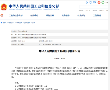 3月11日,工信部官网发布《光伏制造行业规范条件(2021年本)》和《光伏制造行业规范公告管理暂行办法(2021年本)》,规范条件中显示,引导光伏企业减少单纯扩大产能的光伏制造项目,加强技术创新、提高产品质量、降低生产成本。