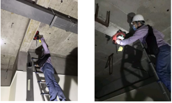 ④材料性能检测分析 检测主体承重结构材料的强度:混凝土结构检测梁板、柱子的混凝土强度、混凝土碳化深度,检测保护层厚度、钢筋分布情况等。