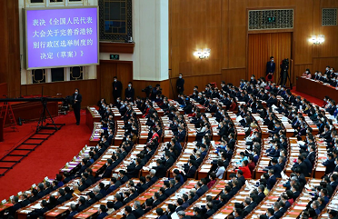 3月11日,经十三届全国人大四次会议表决,《全国人民代表大会关于完善香港特别行政区选举制度的决定》高票通过。这是继制定实施香港国安法后,中央完善香港法律和政治体制的又一重大举措。决定的通过,为堵塞香港现行选举制度漏洞,从制度机制上全面贯彻落实“爱国者治港”原则,确保中央对香港的全面管治权,确保香港长期繁荣稳定和“一国两制”实践行稳致远,提供了坚实有力的宪制保障。