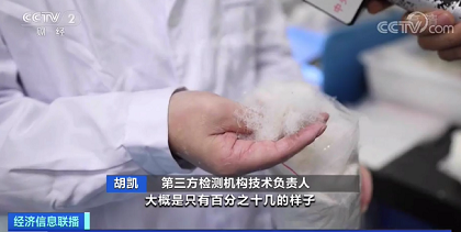第三方检测机构技术负责人 胡凯:就像我手上的这个样品,它的含绒量大概只有百分之十几,里面主要的成分是绒丝和羽丝,绒子的含量非常非常低,导致保暖性非常差。
