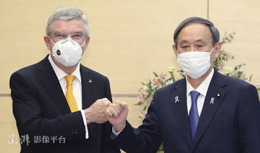 资料图:国际奥委会主席巴赫和日本首相菅义伟 图自澎湃影像