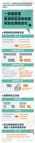 根据全国人大关于完善香港特区选举制度的决定,香港立法会目前的70个议席将会增加到90个,而未来选举委员会除了可以提名、选举特首,还能选举立法会部分议员。