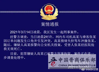 随后,福州长乐区警方发布案情通报:14日凌晨2时许,网约车司机高某与乘客张某发生口角,情绪失控驾车冲撞张某。随后,高某报警向公安机关投案自首,受害人张某抢救无效死亡。